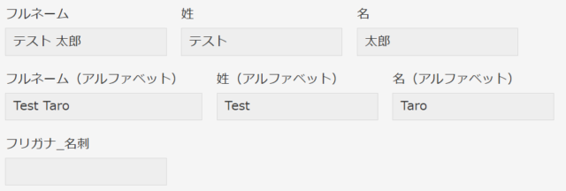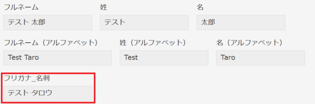 今回は、こちらの「テスト 太郎」のフリガナをフィールドに登録したいため、