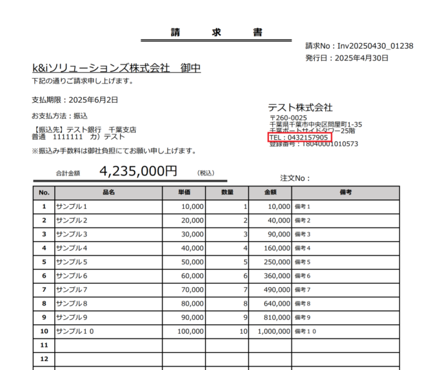 今度は、下記のような画像ファイルに記載されている「電話番号」のハイフンを除外して登録していきたいと思います。