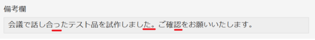 今回は、備考欄の文章の誤字脱字を修正してフィールドに登録したいため、